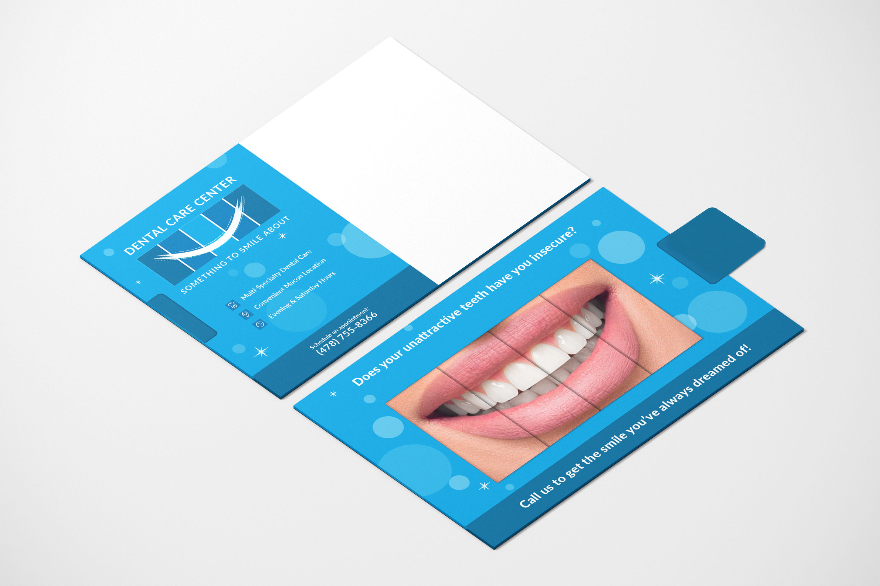 I designed an interactive direct mailing card for a local dental business as a class assignment. People often become weary of receiving generic, stagnant mail, so I wanted to create something engaging. By making the card interactive, I aimed to leave viewers with a memorable experience that would stand out and capture their attention.